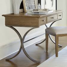 Thanks to technology, paper storage is not as critical as it used to be. Many of our clients opt for a nice writing table without file drawers. This is a clean look and works well in small spaces. You can even do a high/low table that adjusts to allow you to sit or stand at your desk. This offers the health benefits of standing rather than sitting for long periods of time.