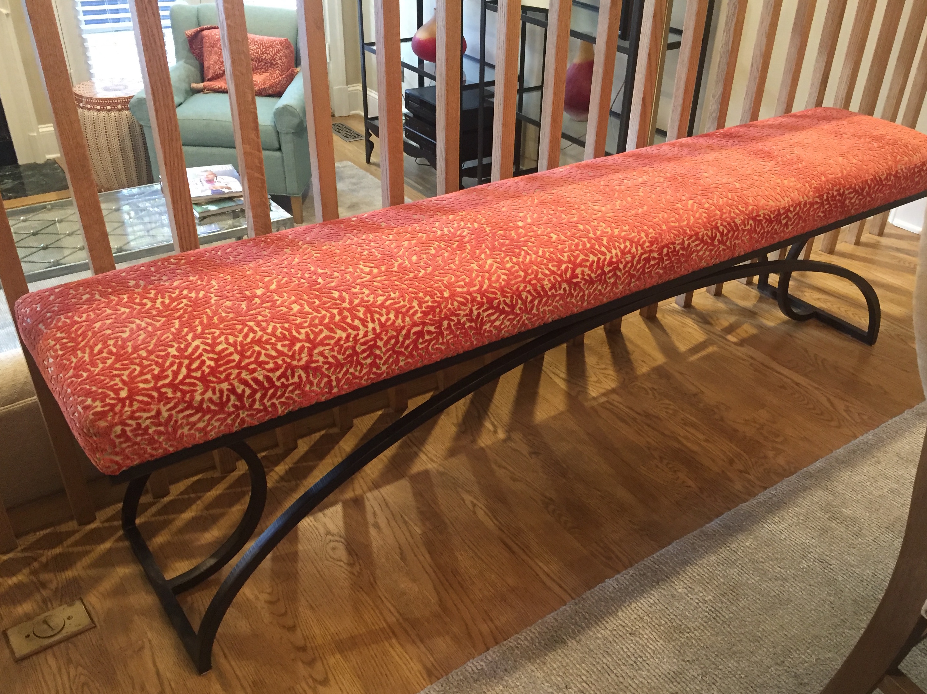 A good example of this is a fabulous ottoman we designed a few years ago. We were working with a client to create a “cowgirl chic” feel in her family room and we needed a statement piece, something to add character to the room.