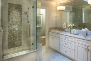After establishing which material is best for you, then consider the overall feel of the space and the mood you want to convey. Tile can make a bold statement or be a subtle backdrop. Decide which direction speaks to you. Do you want a glamorous bathroom that would make Marilyn Monroe jealous or a Zen retreat to recharge and rejuvenate? Also, think about the overall palette you want to achieve. Is it warm or cool? This is very important, especially when selecting several tiles for one space. Keep a consistent palette. Neutral tiles can be particularly tough. There are endless shades of white, gray and beige. Remember…cool or warm. Stay the course.