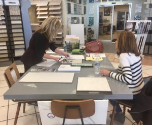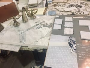 When meeting a client to select tile, I find it is helpful to pre-select a few options prior to their arriving at the showroom. This eliminates the panic of so many options. I base my selections on other elements in the room, our overall color direction, the client’s style and budget. I then present options and fine tune the details with the client and showroom consultant. It is well worth the money to hire a professional to make the process of selecting tile efficient and painless.