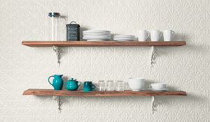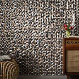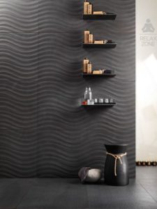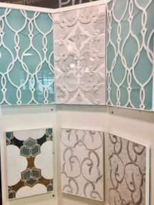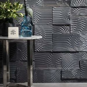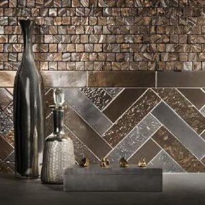 Textured 3-D tile — These tiles are often seen in a monochromatic palette with mixed patterns to create texture and movement. Tiles with a raised pattern are paired with solid, smooth tiles to create a motif that is calm and organic. 3-D metallic tiles are also popular to add dimension and a reflective quality to the otherwise quiet aesthetic.