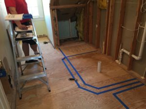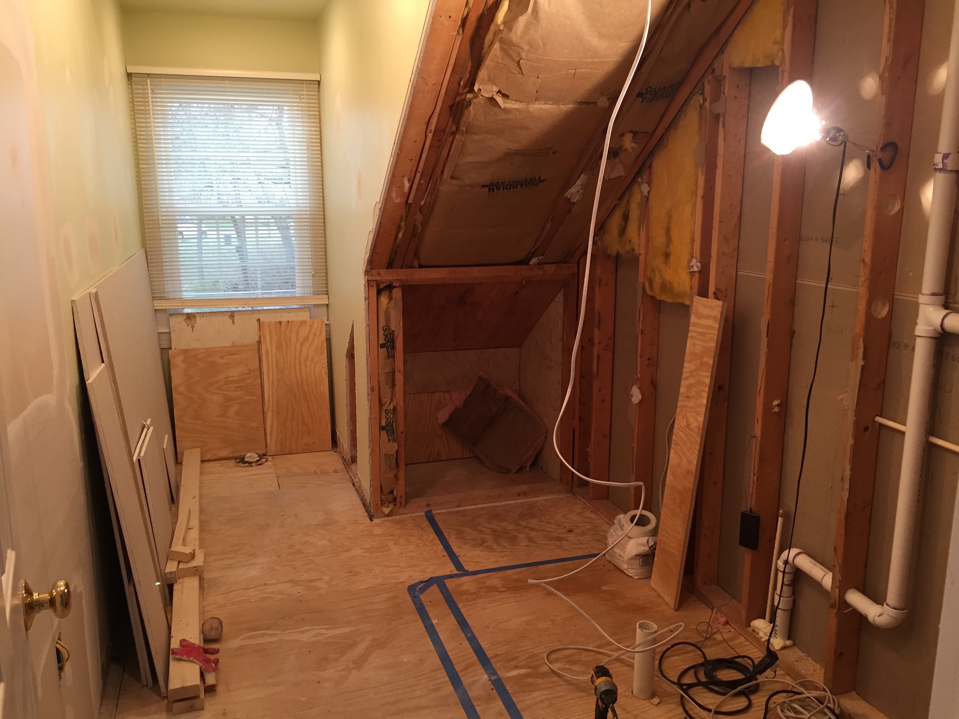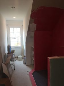Our other client was a teenage girl with two small brothers.  She was in need of a little privacy and a quiet place to study. She opted for a style with a vintage, bohemian vibe for her bathroom and bedroom.  She was completely involved with selecting the tile, vanity, fixtures–and so much more.  It beautifully reflects her spirit and personality, but was also thoughtfully designed to maximize space and storage.