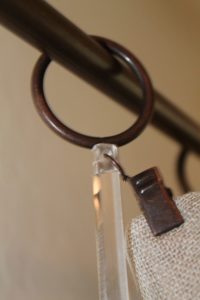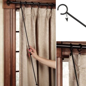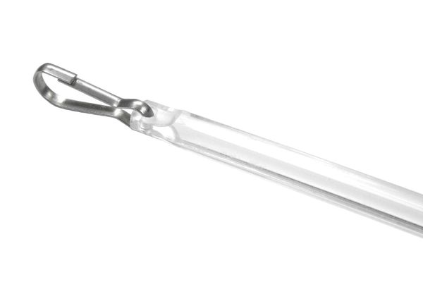A baton (often called a wand) is a long, thin, stick shaped piece of hardware used to open and close drapery panels. Most of us have used batons to open or close draperies in a hotel room. Batons can be made from wood, acrylic, or metal and are clipped to the lead carrier on the drapery rod. The baton helps you open and close the draperies without yanking and keeps dirty hands off the fabric.