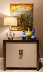 Artwork is key to any well designed space and it was even more so on this project. The client’s sister is an accomplished artist, whose talent shines in oil and mixed media. The client selected several of her pieces for the new rec room. These pieces are fabulous and add a very personal narrative to the space.